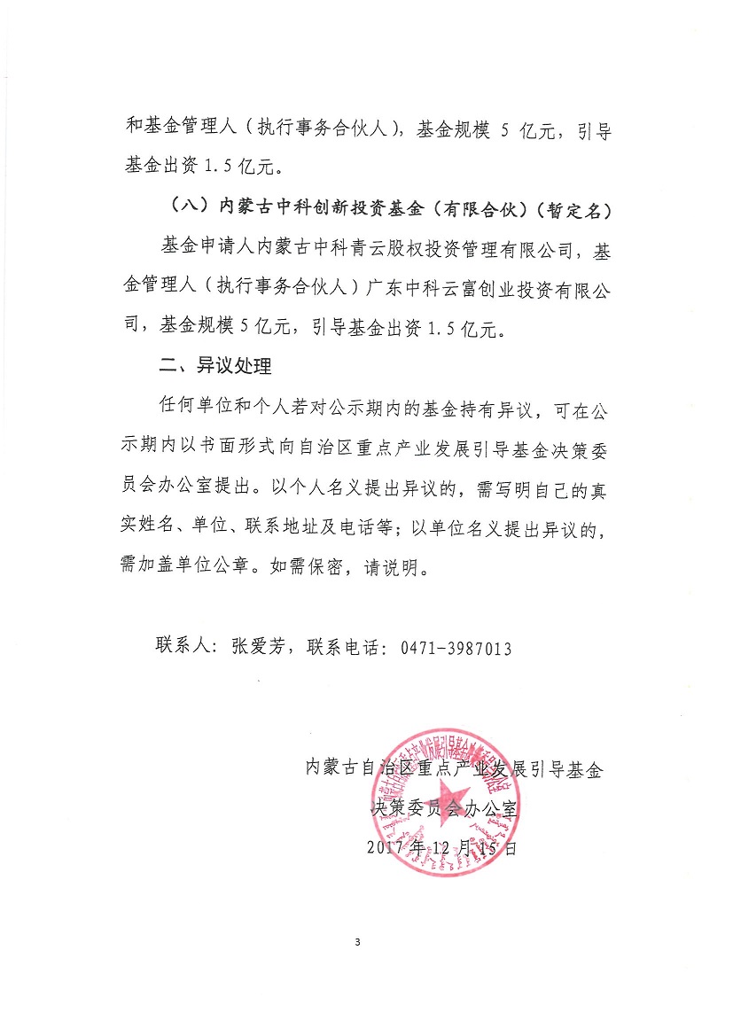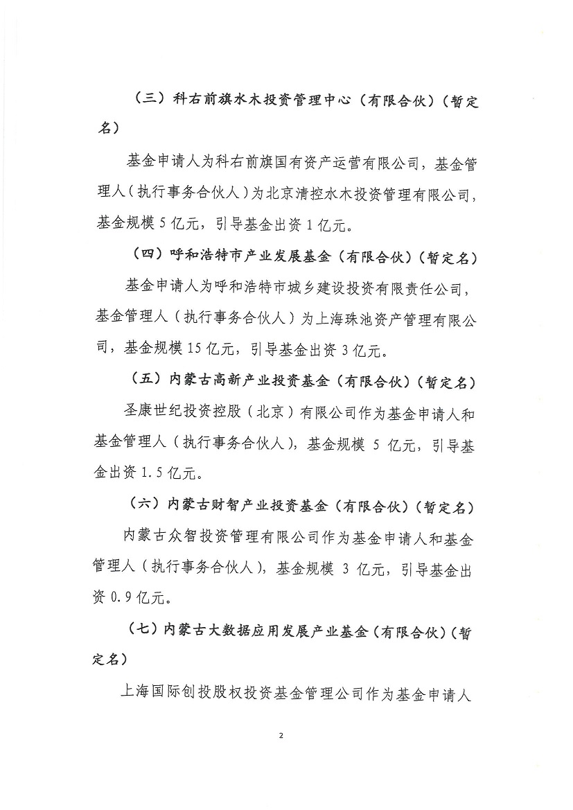 關(guān)于內(nèi)蒙古自治區(qū)重點產(chǎn)業(yè)發(fā)展引導基金參股基金的公示