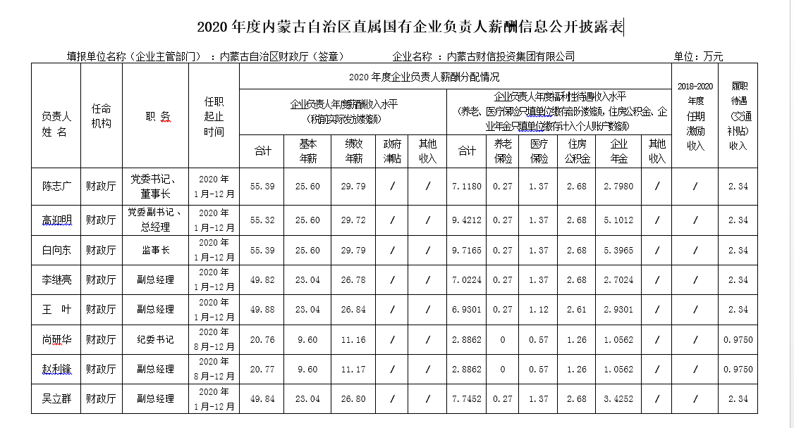 2020年度內(nèi)蒙古自治區(qū)直屬國(guó)有企業(yè)負(fù)責(zé)人薪酬信息公開披露表